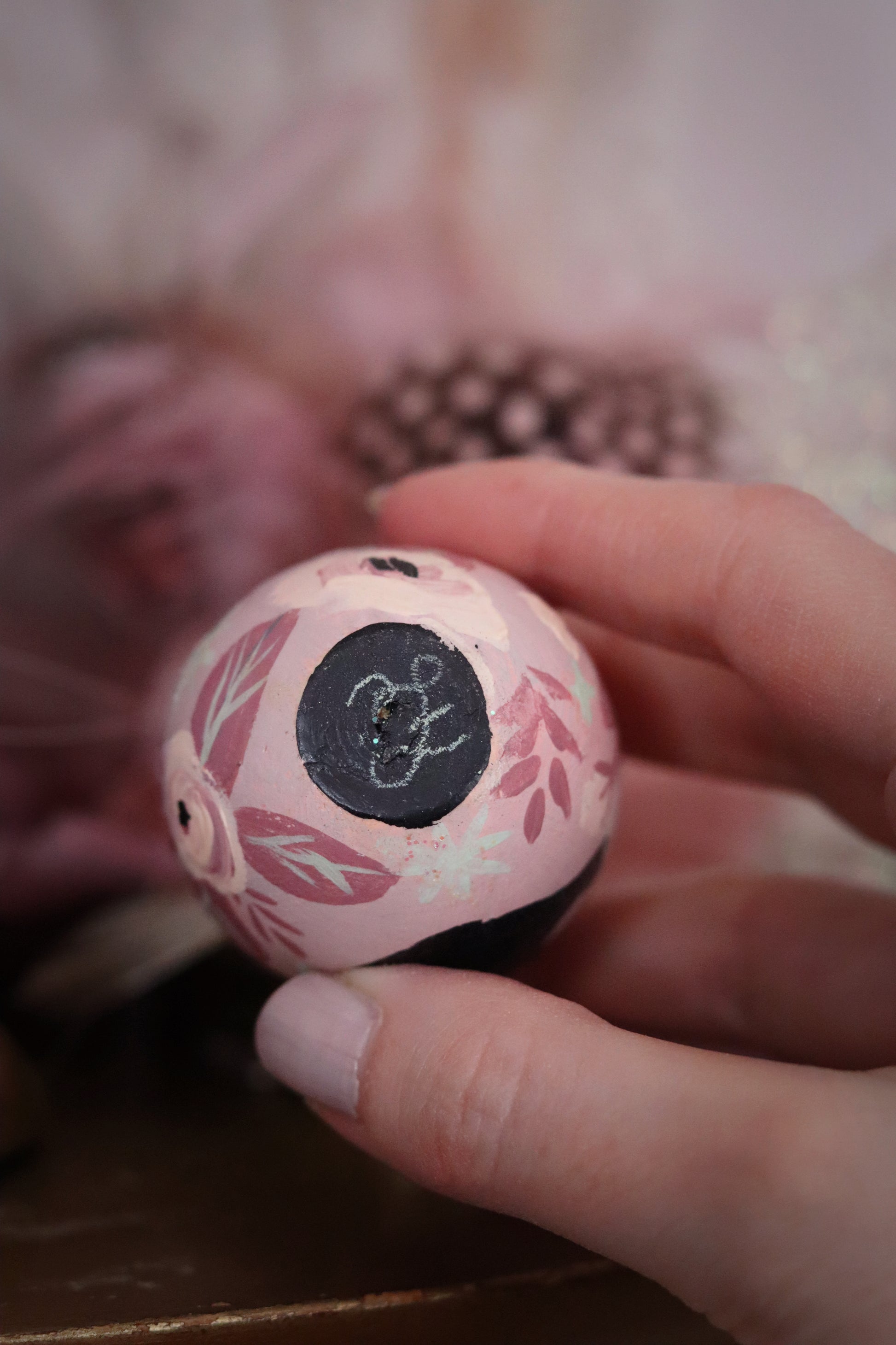✦ Signature initials on the bottom of the egg.