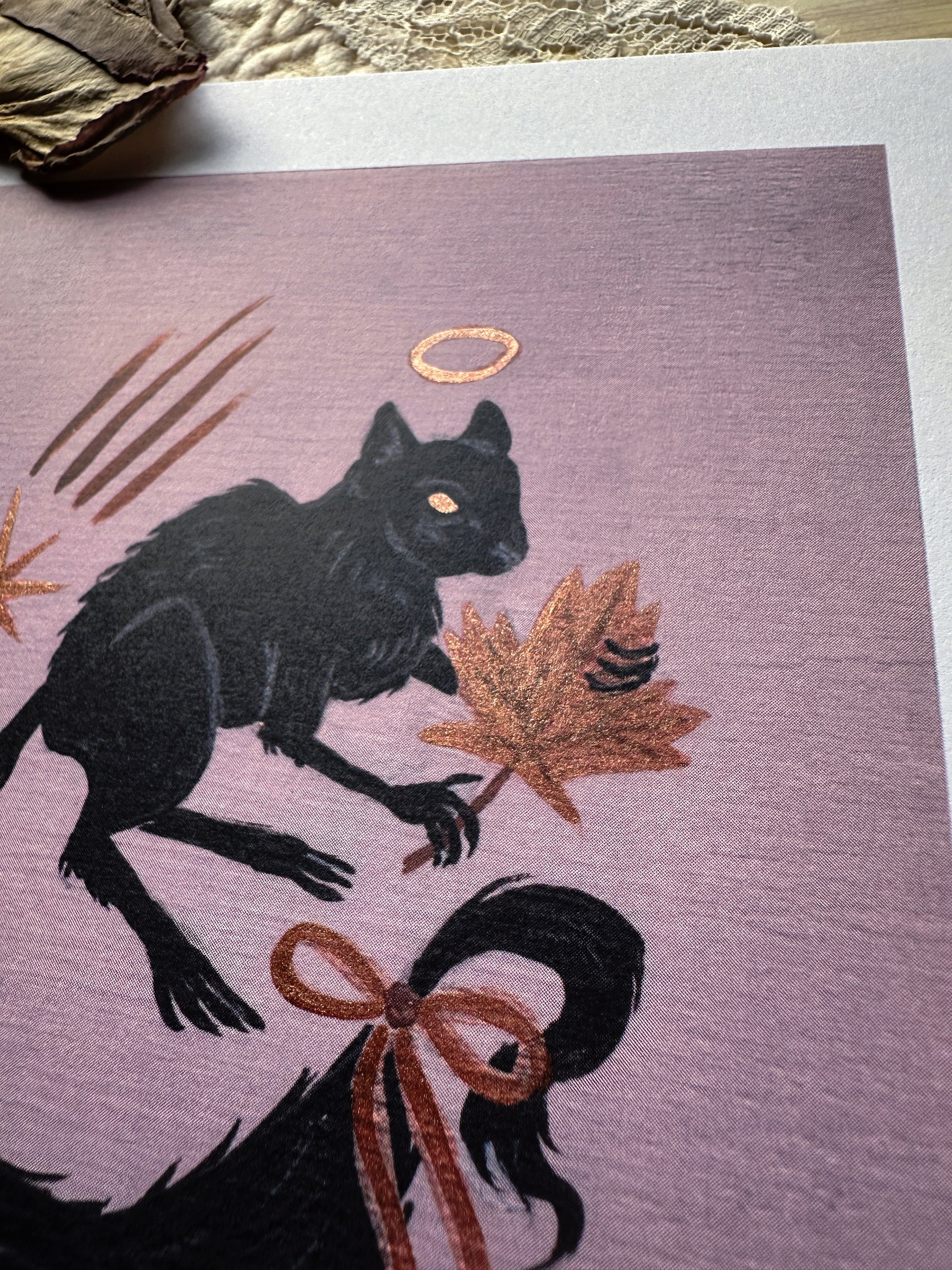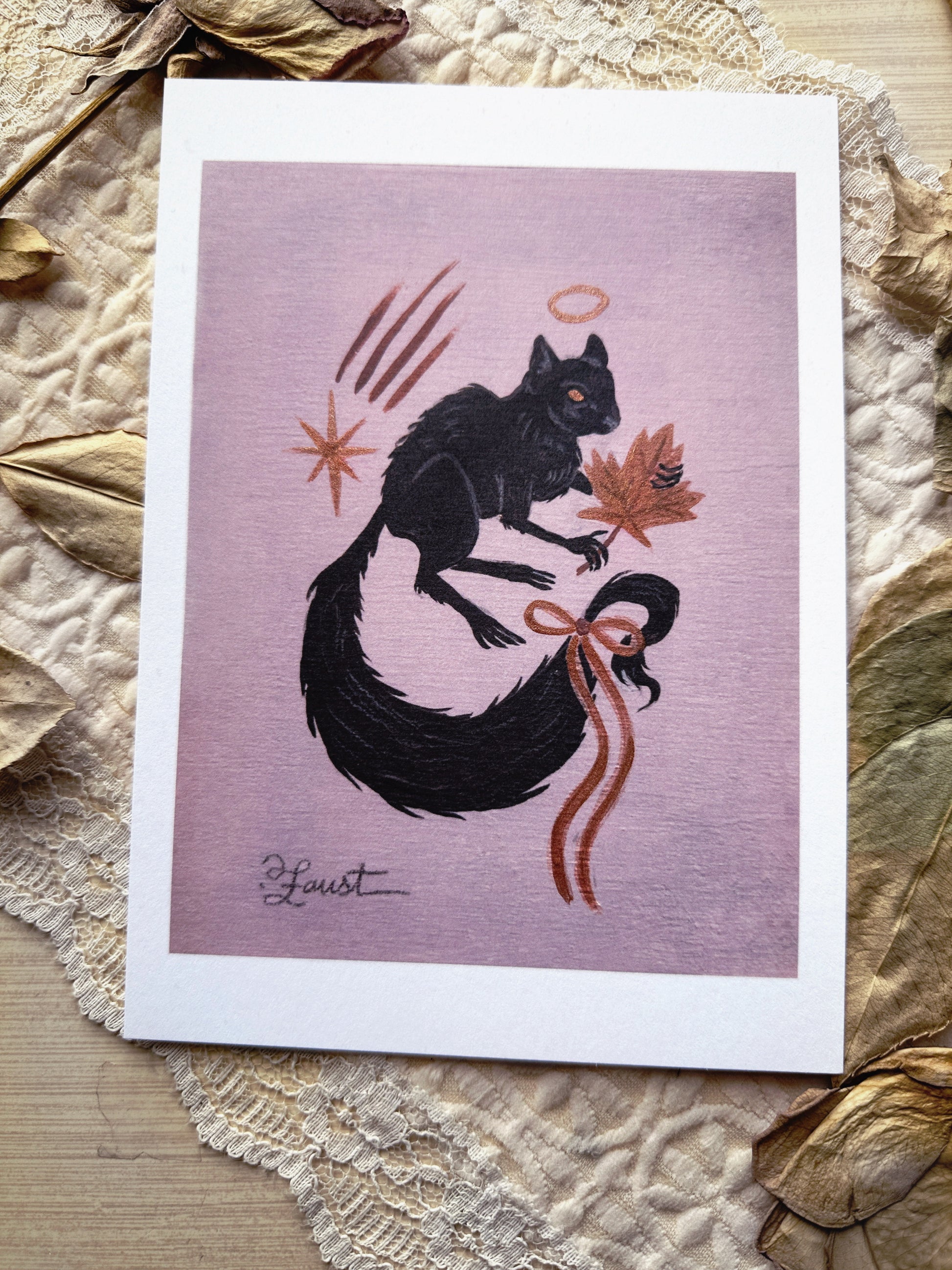Inspired by a spooky black squirrel I spotted in my yard recently. May he bring you lots of magic, luck & spooky omens!🤍✨